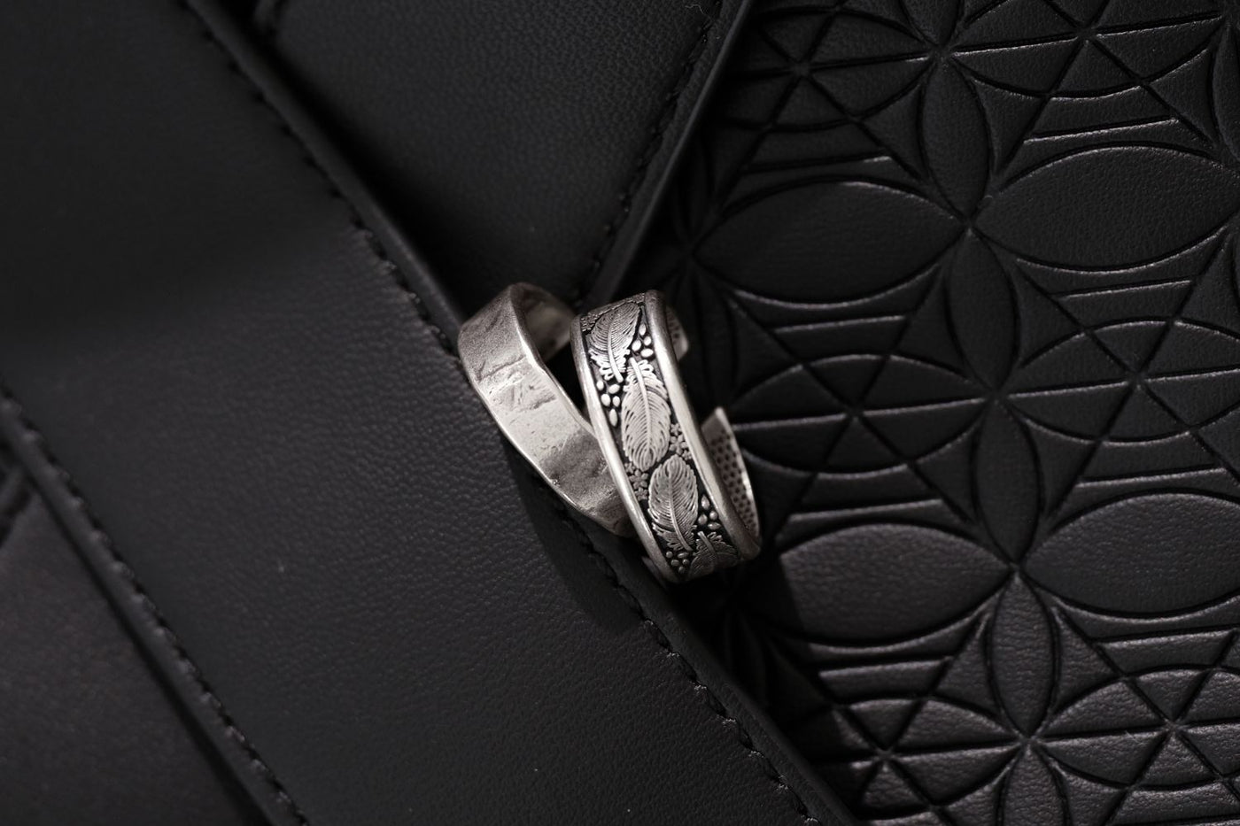 La simple bague ouverte courbée avec un design battu combiné au motif fin de la bague en plumes fait de chaque tenue quelque chose de spécial.